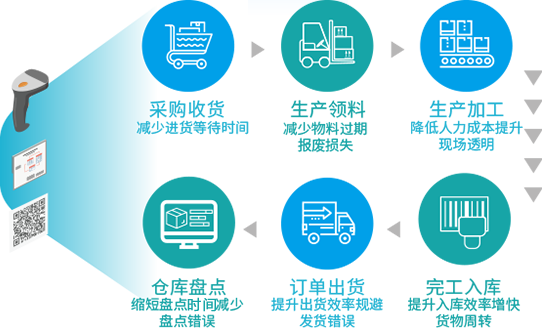 从供应商开始到生产报工到入库到出货的整个环节,全部启用质量追溯系统,提升企业供应链协同效率 (下单、交付、对账),在满足生产所需同时,有效控制库存、提升采购资金周转、提升库存周转。