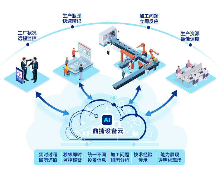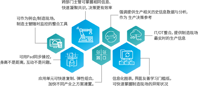 基于工业互联网技术,建构智能设备基础。用人/机实时的动态智能协作工作方式,以达到随时&随地监控的智能管理。依据真实工业数据,可传承经验、还原分析制造过程,打造全面性的数字化工厂。