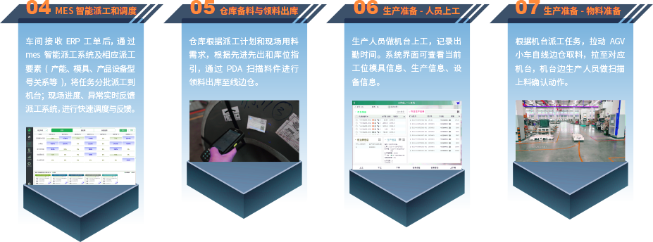 车间接收ERP工单后,通过mes智能派工系统及相应派工要素(产能、模具、产品设备型号关系等),将任务分批派工到机台;现