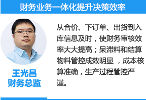 从合价、下订单、出货到入库信息及时,使财务审核效率大大提高;呆滞料和结算物料管控成效明显 ,成本核算准确,生产过程管控严谨。