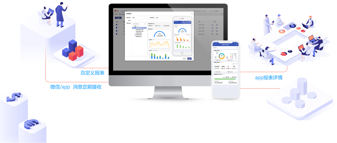 • 机联网自动采集数据,微信主动推播,让管理者快速掌握公司生产运营概况;