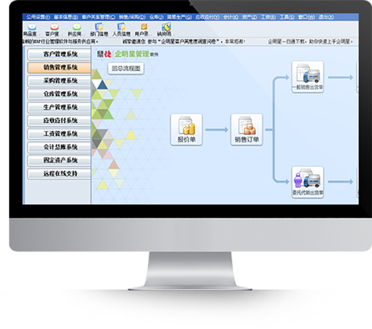 企明星商贸版采用业务流程导航式人性化设计,具有“简单实用,操作方便,
