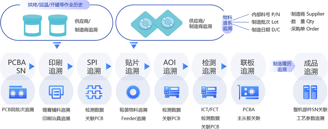 SMT电阻电容,PCB等贴条码无法形成有效追溯 ,产品更新换代快,对精细化管理要求高。